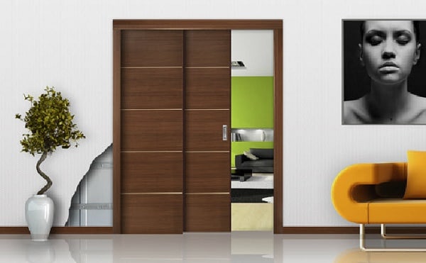 - Nếu cần sự riêng tư tuyệt đối, bạn có thể sử dụng vách ngăn kín hoàn toàn dạng cửa kéo. 2 không gian từ đó sẽ hoàn toàn tách biệt. Vật liệu gỗ cho khả năng cách âm tốt, đem lại sự yên tĩnh cho bạn.