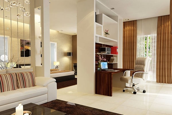 Đối với những gia đình không có diện tích, hoặc những người mong muốn có một không gian làm việc, tiếp khách riêng tư ngay trong phòng ngủ của mình, sử dụng vách ngăn chính là lựa chọn hợp lý nhất hiện nay.