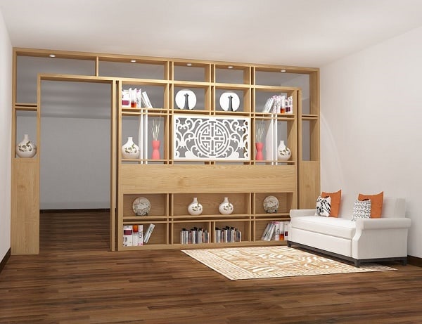 Thiết kế vách ngăn gỗ làm kệ để đồ trang trí