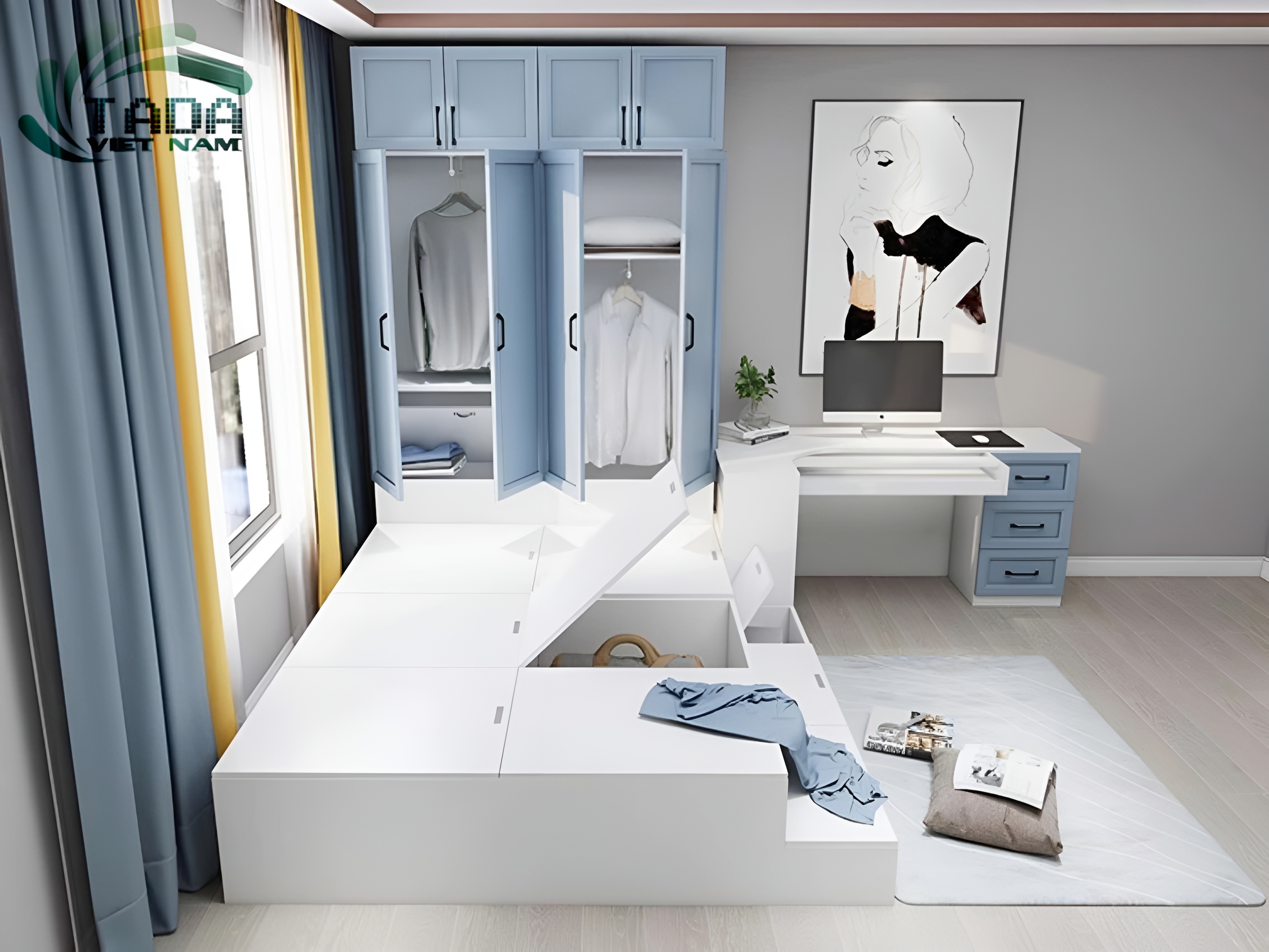 >> Mẫu giường kết họp tủ quần áo hiện đại TADA Việt Nam TD3188